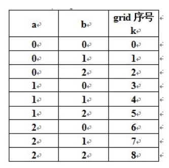 row 和 col的标记比较好处理,关键是找出grid子网格的序号与 行i列j的关系