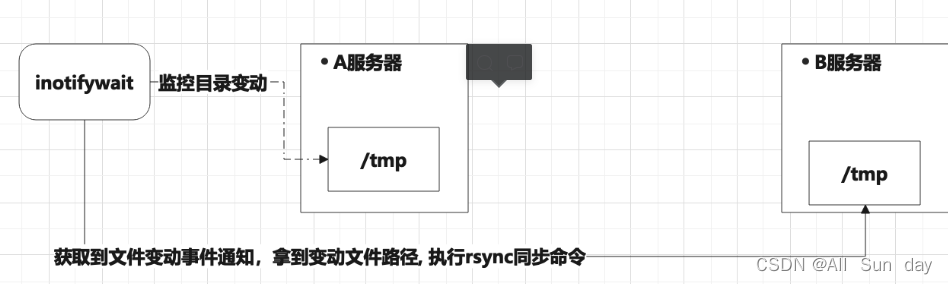 inotify是Linux下的一个工具,inotifywait是其中的一个组件,就能帮我们监控某个目录,一旦文件内容发送变动,我们会获取到一个事件通知,拿到文件的路径。之后我们通过自定义shell脚本,执行rsync命令,实现实时同步的目的。