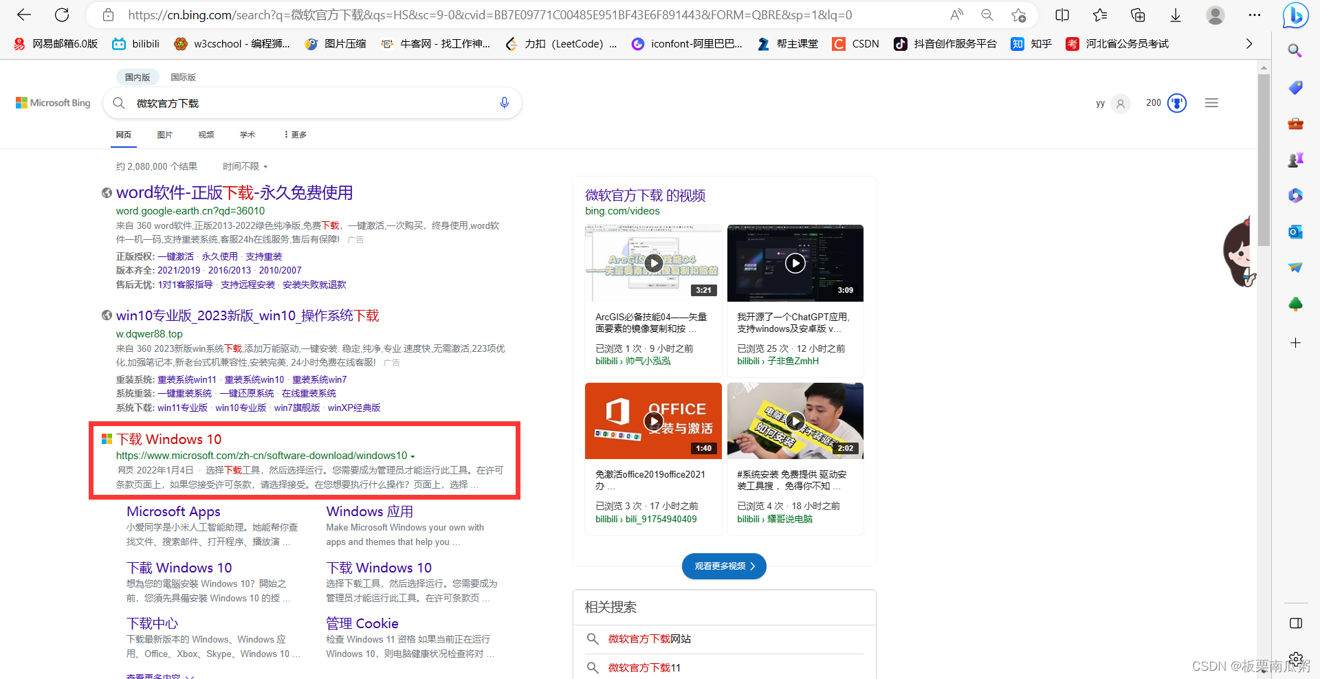 搜索微软官方下载。