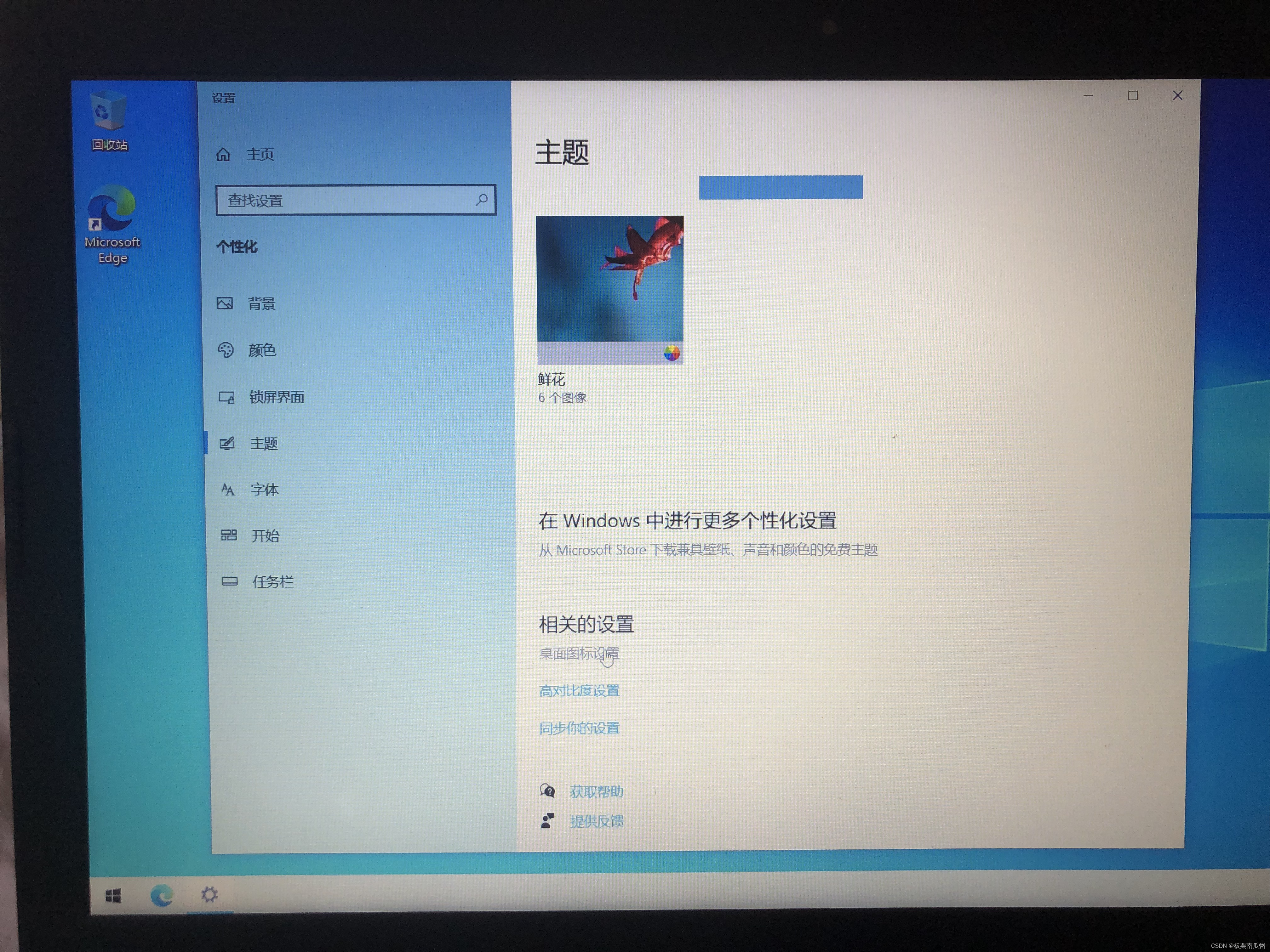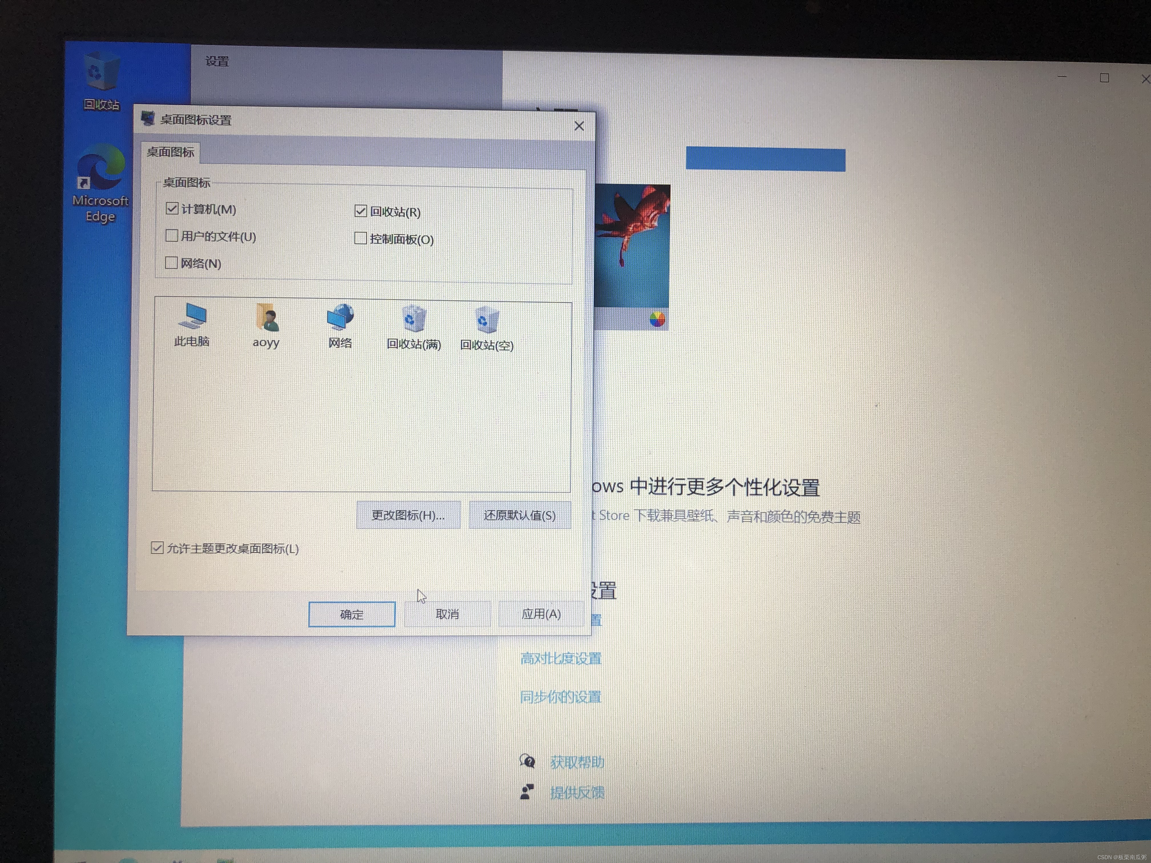 桌面空白处右键,选择个性化,选择左侧的主题,点击桌面图标设置,勾选计算机等图标。