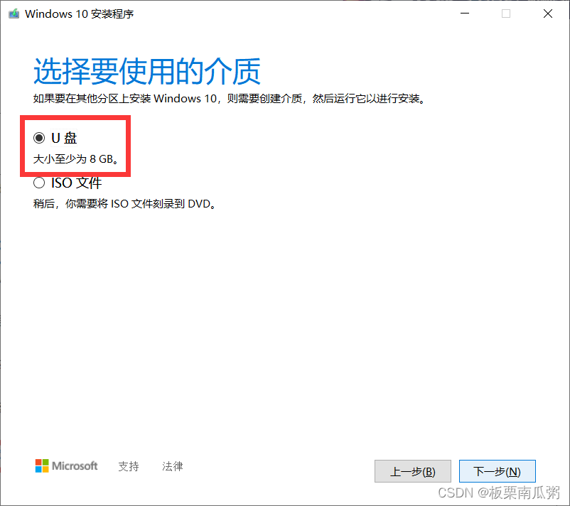 选择要使用的介质,默认为U盘。