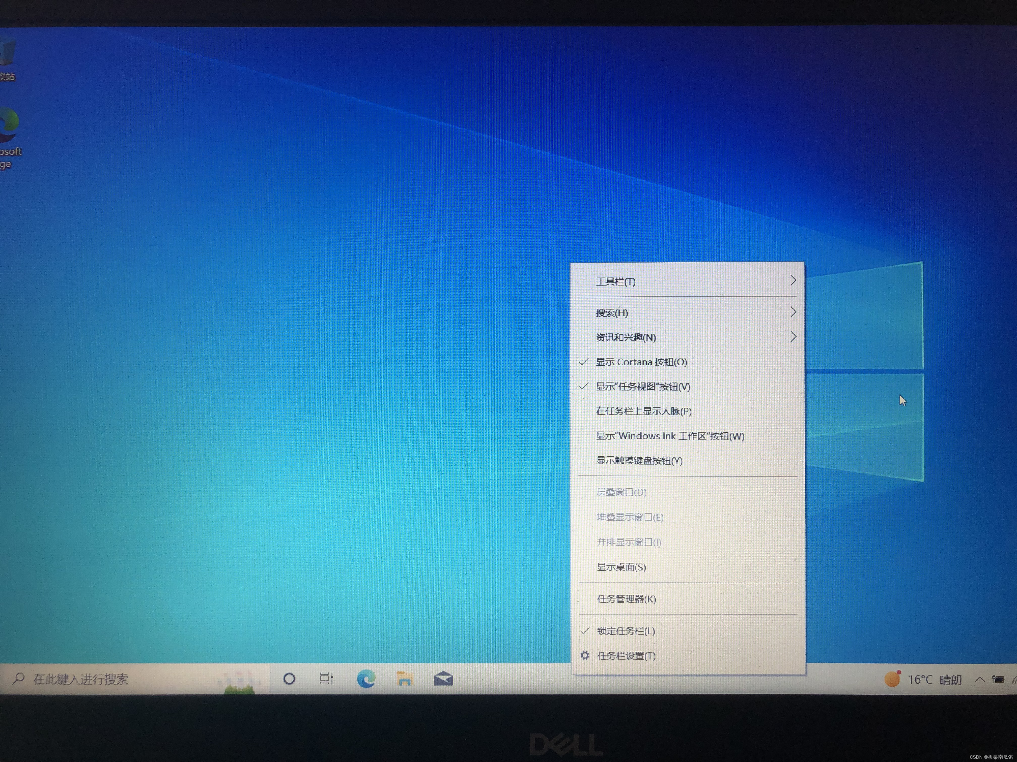 进入新的桌面后,可以进行一些简单的设置,右键任务栏,取消勾选显示一些不常用的按钮。