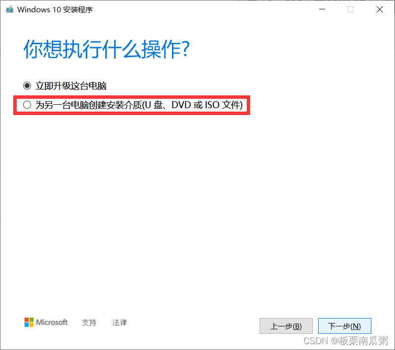 选择第二项,“为另一台电脑创建安装介质”。