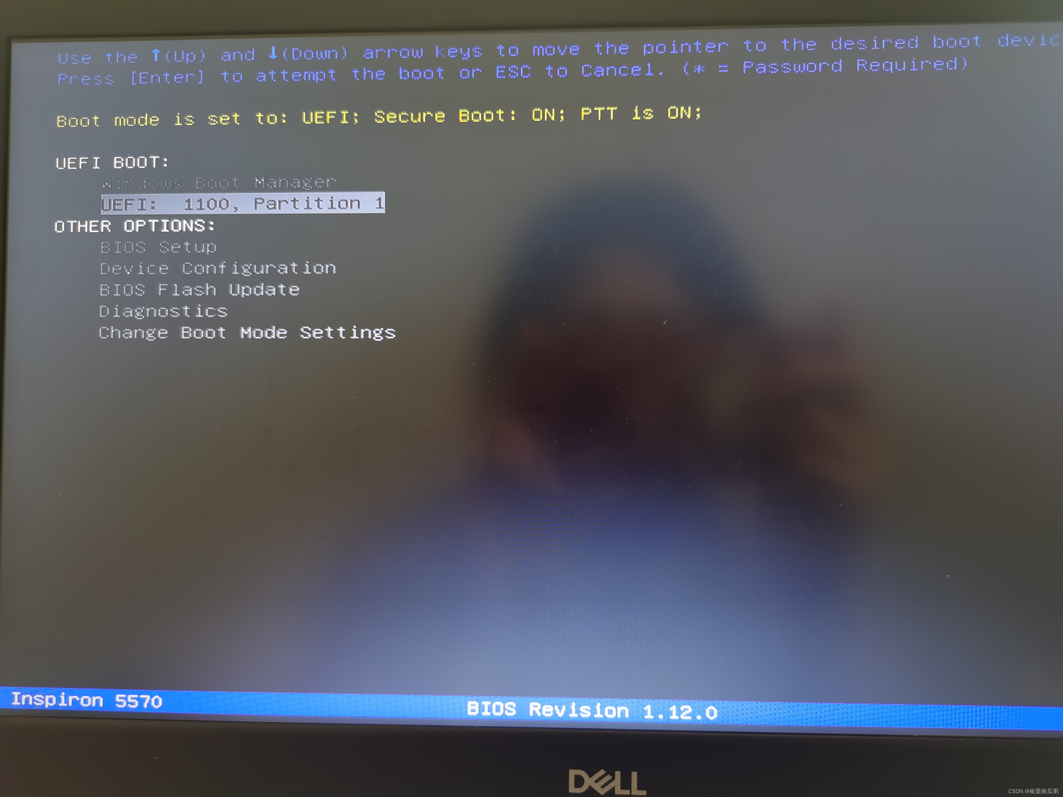 关机后,重新启动,狂按F12键,选择“UEF1: 1100, Partition 1”选项,回车。