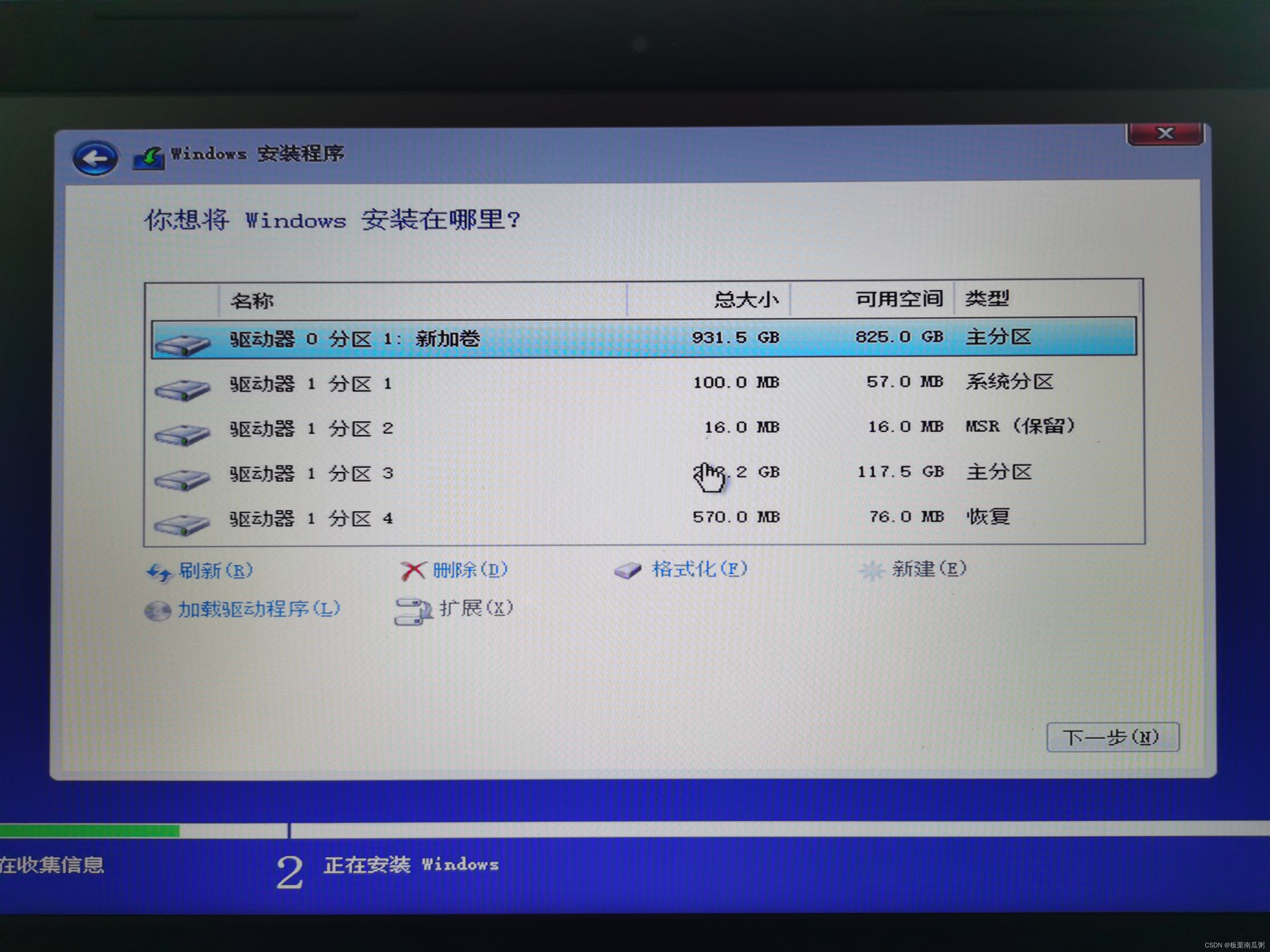 选择需要安装系统的主分区,点击下一步开始安装。
