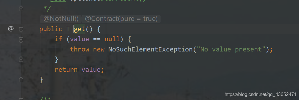 2、我们也可以在fingById()后面加上.get()方法,该方法会帮我们判断值是否存在,我们可以点击去看看源码:
