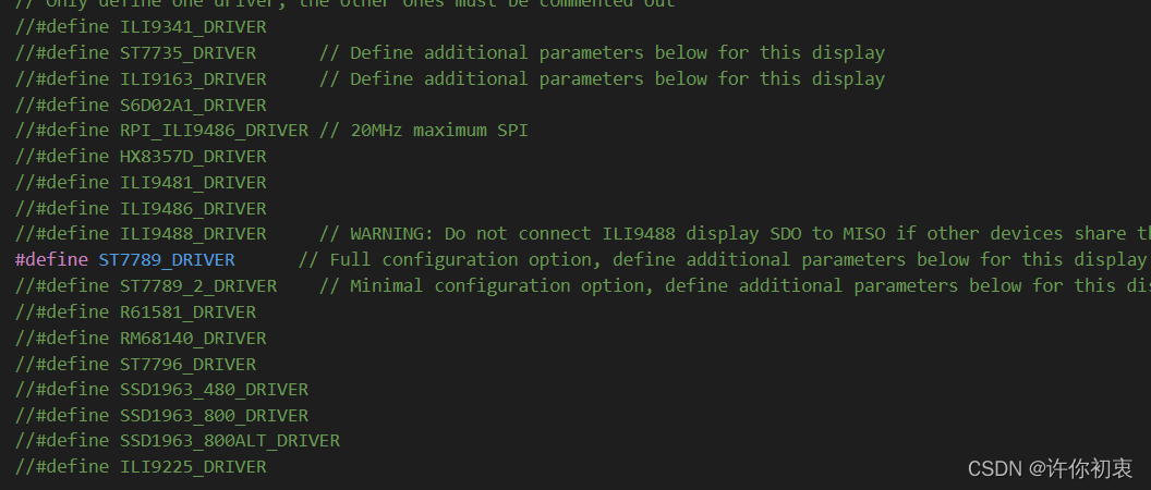 打开TFT.h进去以后都是官方给配置好的库文件,