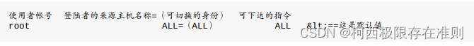 1. “使用者帐号”:系统的哪个帐号可以使用 sudo 这个指令的意思;