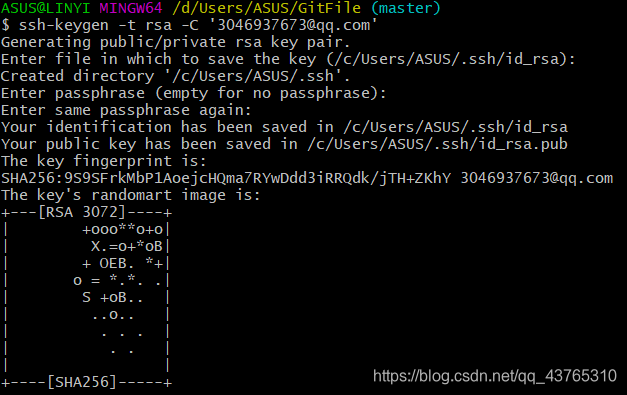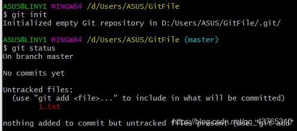 这个文件夹不要有中文,用来本地存放git文件,如:D:\Users\ASUS\GitFile。