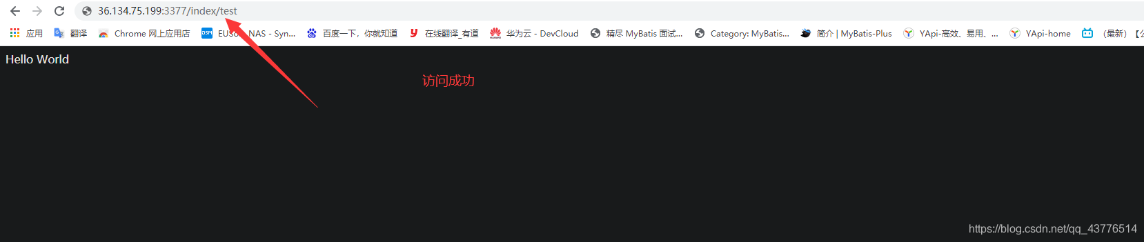 然后依旧是配置安全组,使用元远程服务器的IP + 3377端口在浏览器上进行访问!比如这里输入的是 http://36.134.75.199:3377/index/test