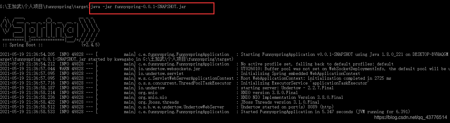4、使用cmd运行此JAR包,确保JAR包没问题