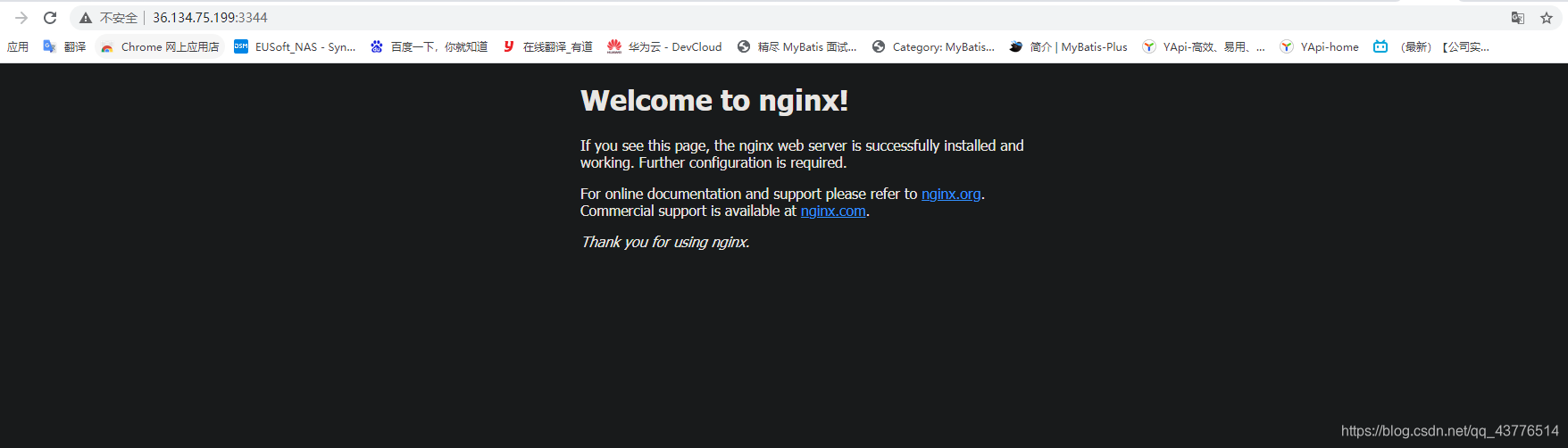 6、然后我们在浏览器输入 http:36.134.75.199:3344,回车,Nginx访问成功!!