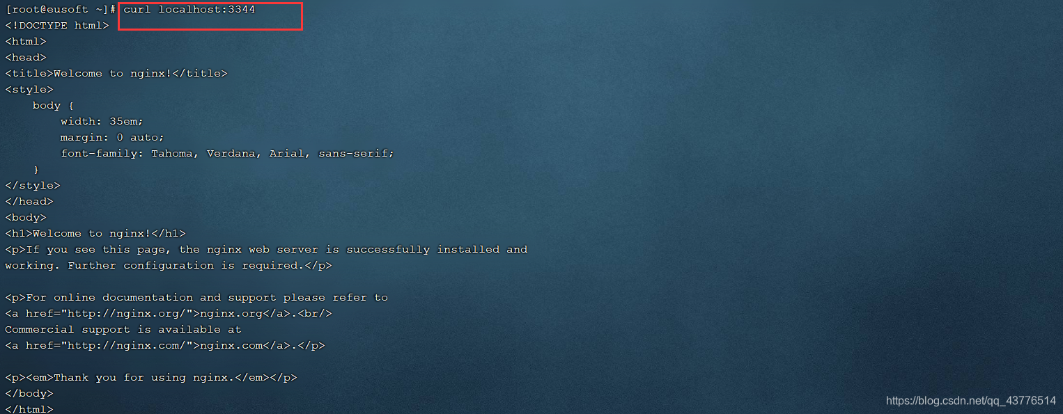 4、这时我们就可以访问部署的Nginx了,首先使用命令行的形式在本地进行访问