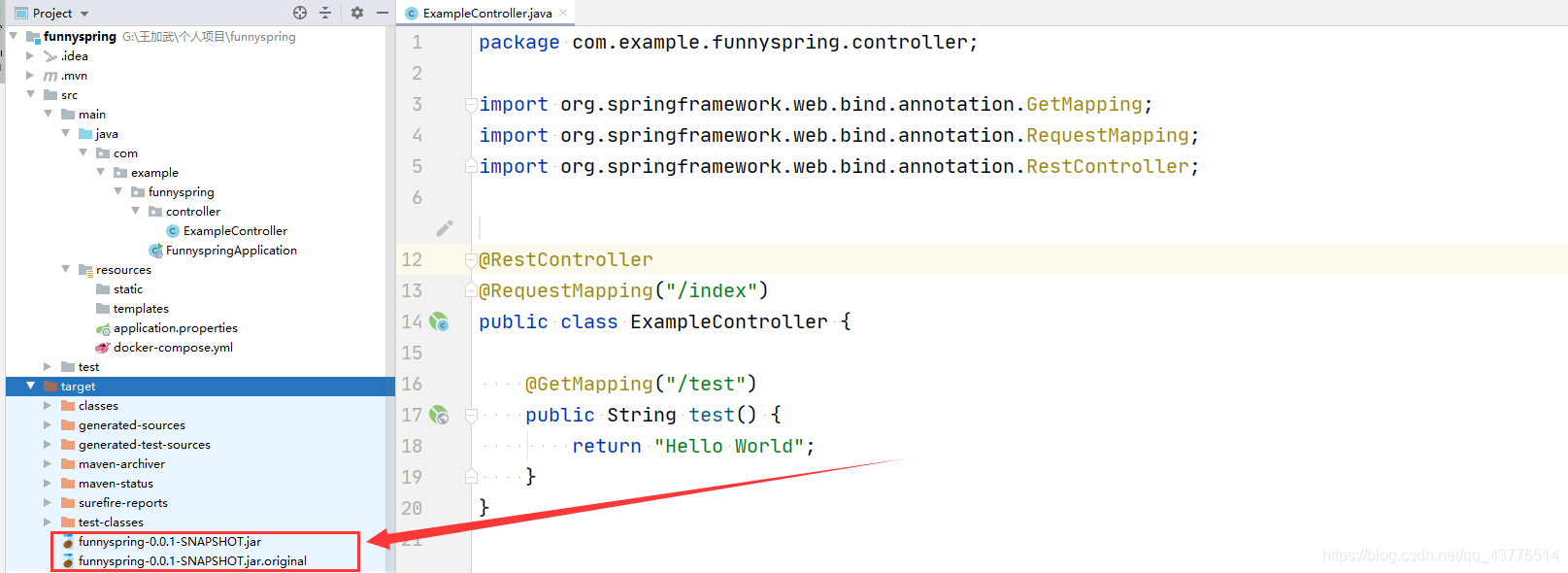 1、在home目录下创建一个文件夹idea,用于存放Dockerfile文件和funnyspring-0.0.1-SNAPSHOT.jar