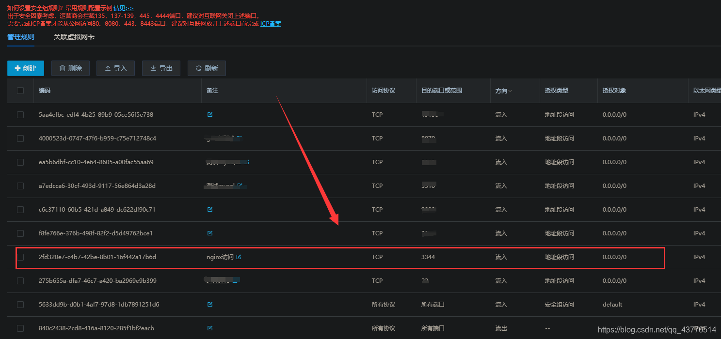 本地虽然是访问成功了,但是既然部署在了远程服务器上,那么我们应该是可以通过服务器的IP加3344端口访问到的,但是在这之前我们必须设置服务器的安全组,我这里以移动云服务器