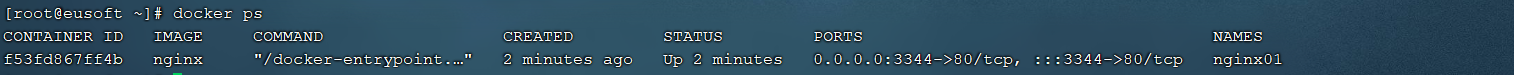 3、查看正在运行的容器列表,发现我们刚刚创建的Nginx容器nginx01存在了