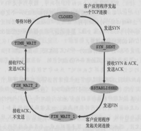 - 组成:发送方主机缓存、变量、与进程连接的套接字,接收方主机缓存、变量、与进程连接的套接字。TCP只运行在端系统中,所以主机之间的其他网络设备都不包含缓存、变量。