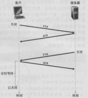 - 第一次:客户TCP向服务器发出一个特殊TCP报文段——首部的FIN字段为1。(双方都能主动发起关闭连接)