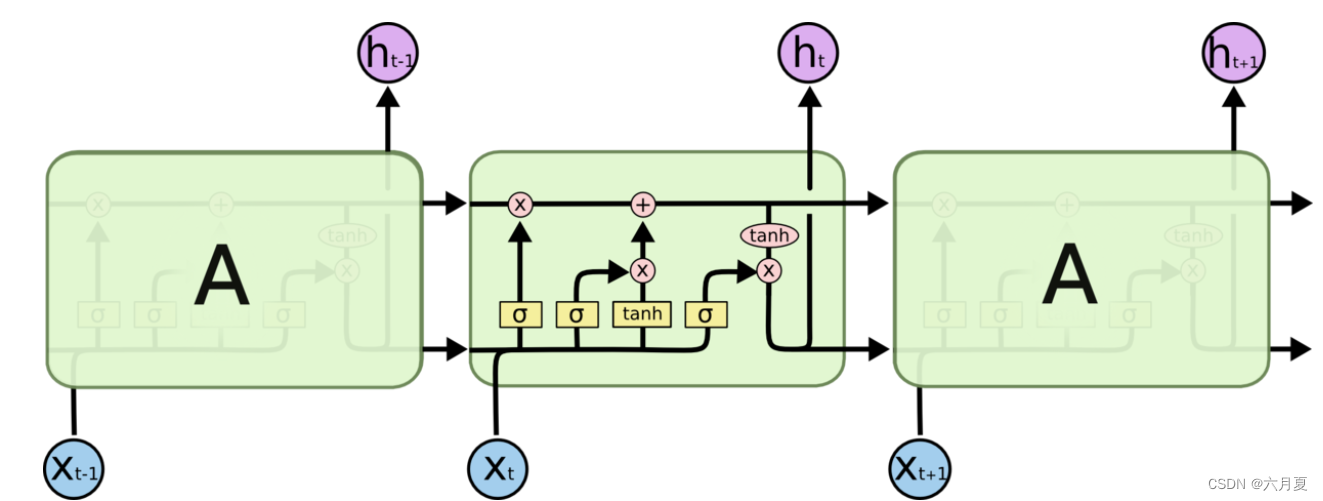 所以一开始会以为是这样多个矩阵的连接。注意,这样的理解是错误的。这张图只是为了便于理解lstm cell的工作原理绘制的不同状态cell的图,实际上只有一个cell在不停地更新状态。