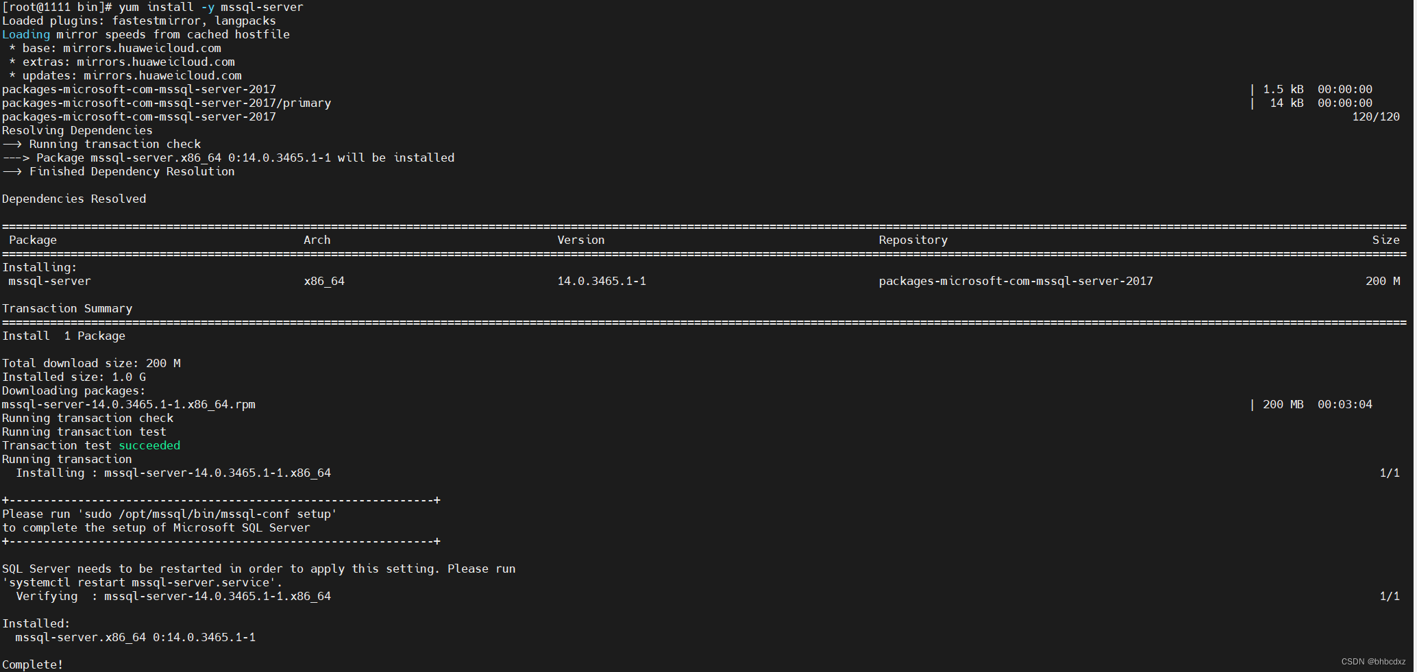 linux下安装sqlserver数据库,这篇文章讲解的是使用yum方式安装,安装的版本为sqlserver2017,步骤如下: