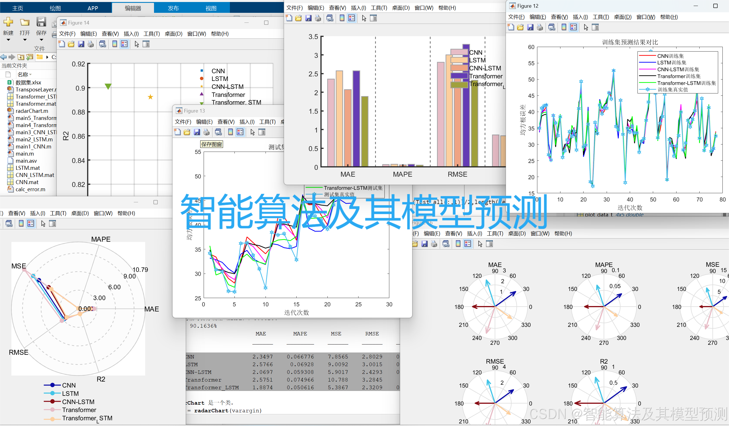 3.评价指标包括:R2、MAE、MSE、RPD、RMSE、MAPE等,图很多,符合您的需要。