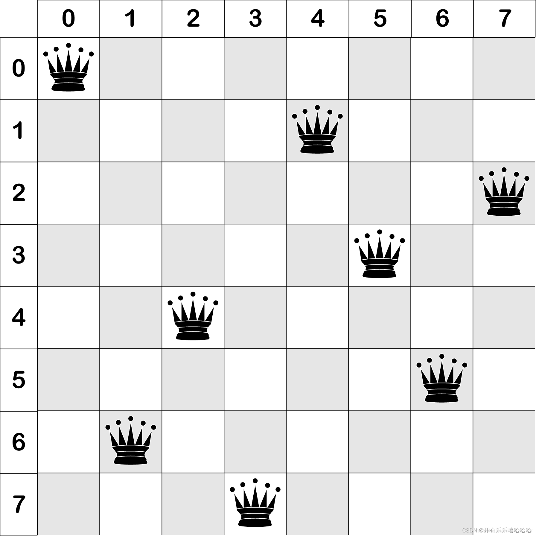 八皇后问题简介:在 8×8 格的国际象棋上摆放八个皇后,使其不能互相攻击,即:任意两个皇后都不能处于同一行、同一列或同 一斜线上,问有多少种摆法。