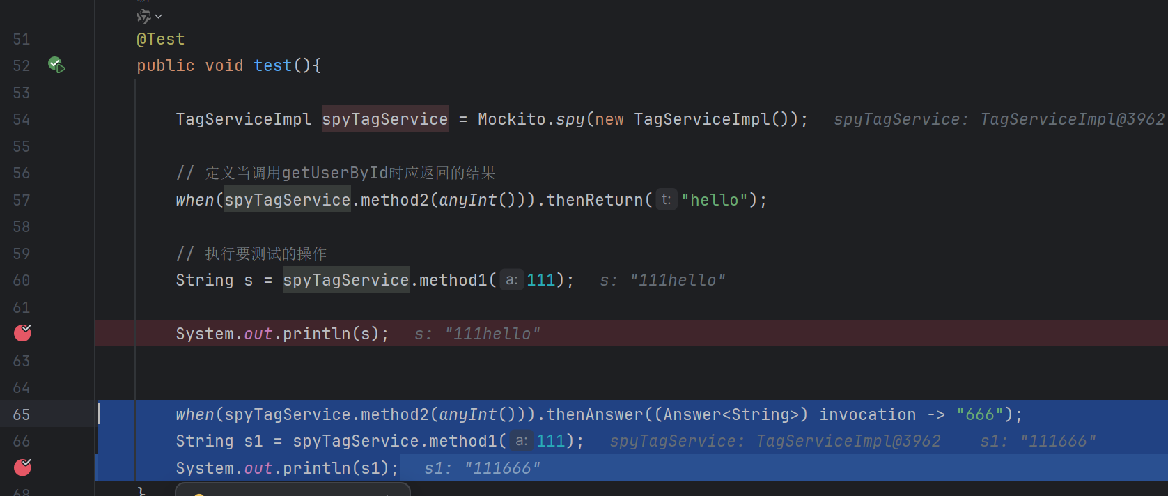 when(spyTagService.method2(anyInt())).thenAnswer((Answer<String>) invocation -> "666");