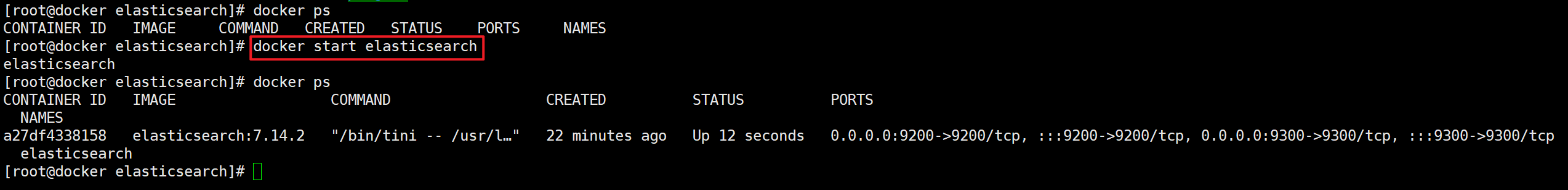 docker start elastisearch