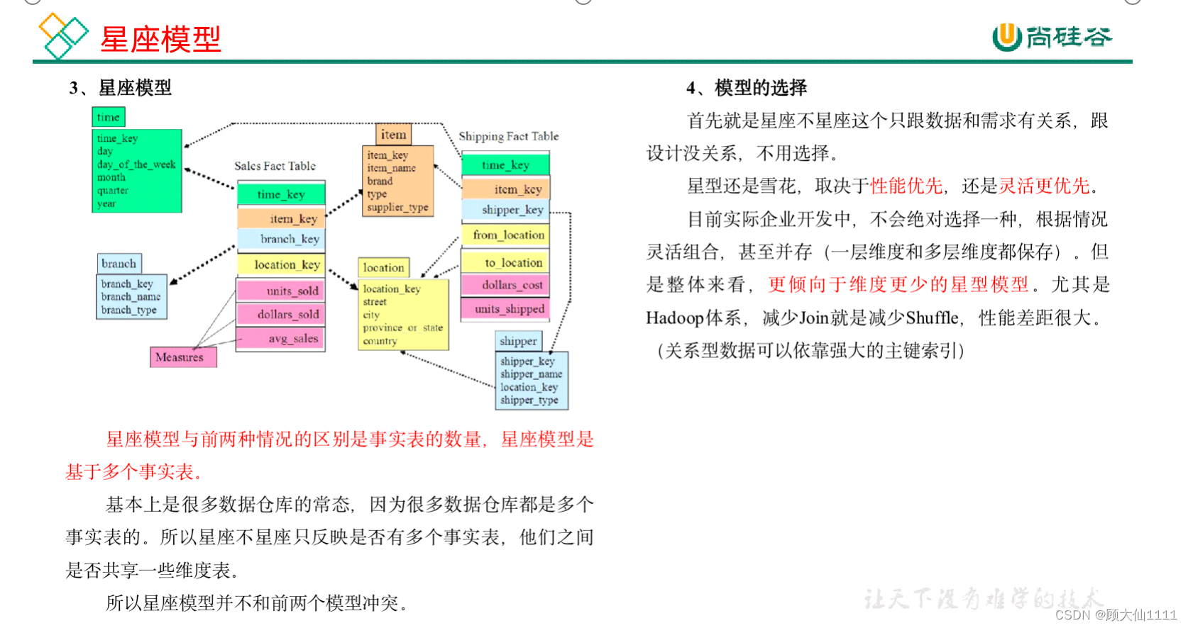 在维度建模的基础上又分为三种模型:星型模型、雪花模型、星座模型。