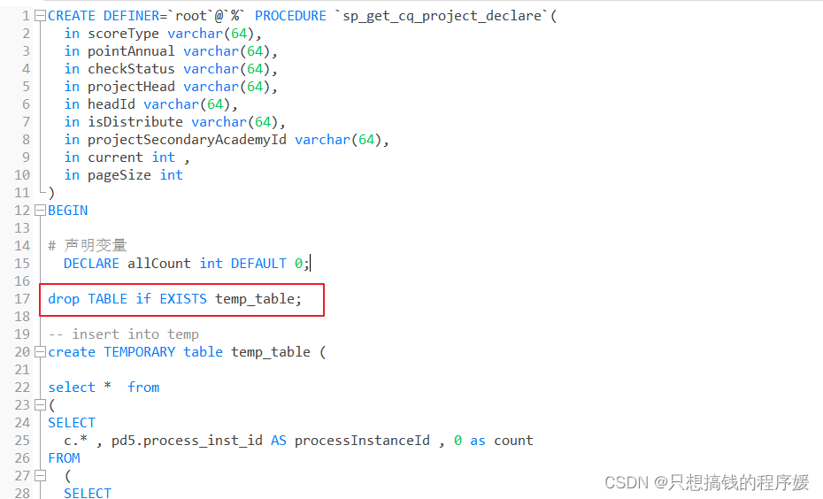 ② DECLARE allCount int DEFAULT 是为了多出来的总数量字段给个初始值