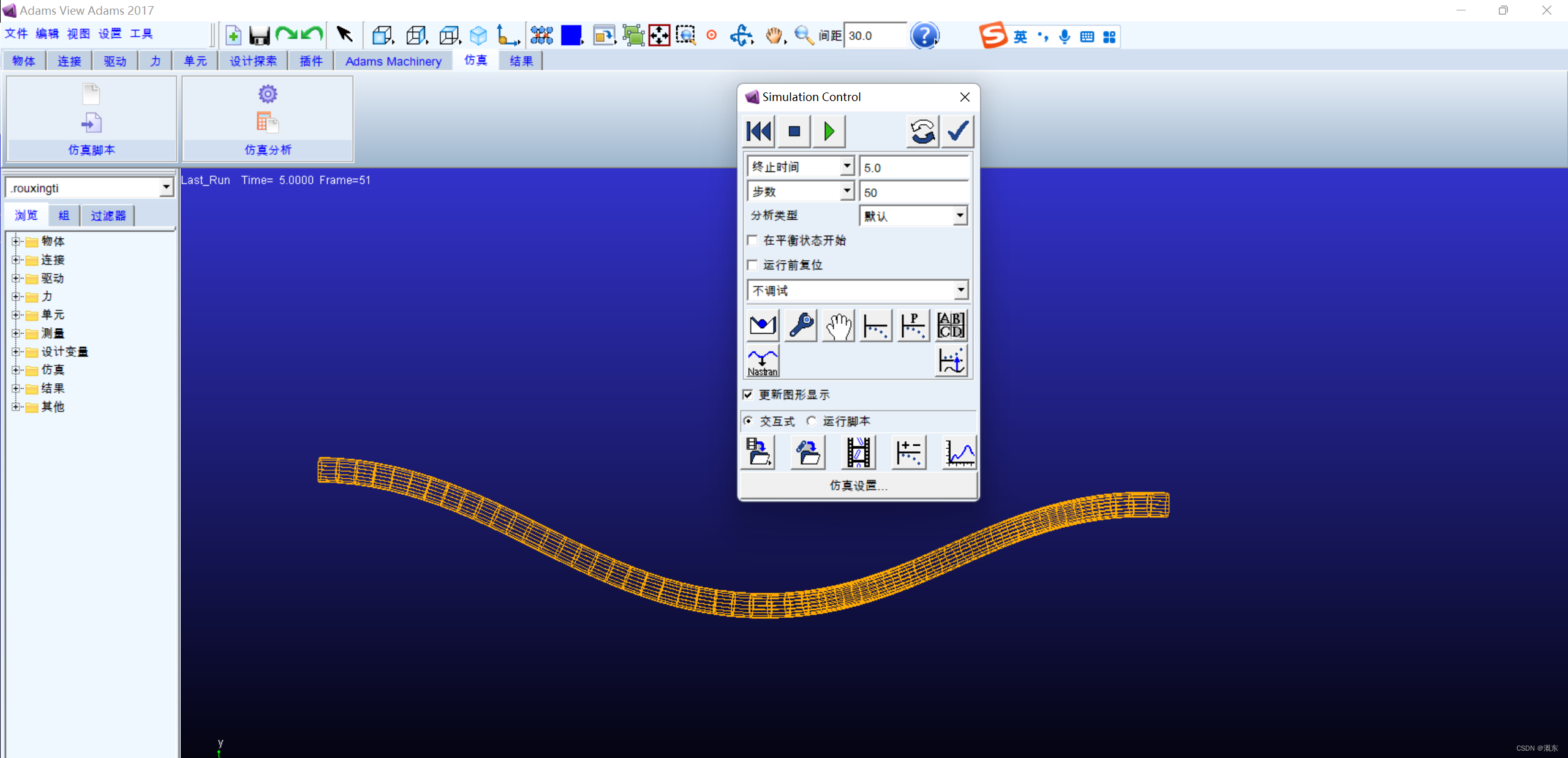 ④运行仿真,可以看到物体被分成若干个小份,整体进行变形。