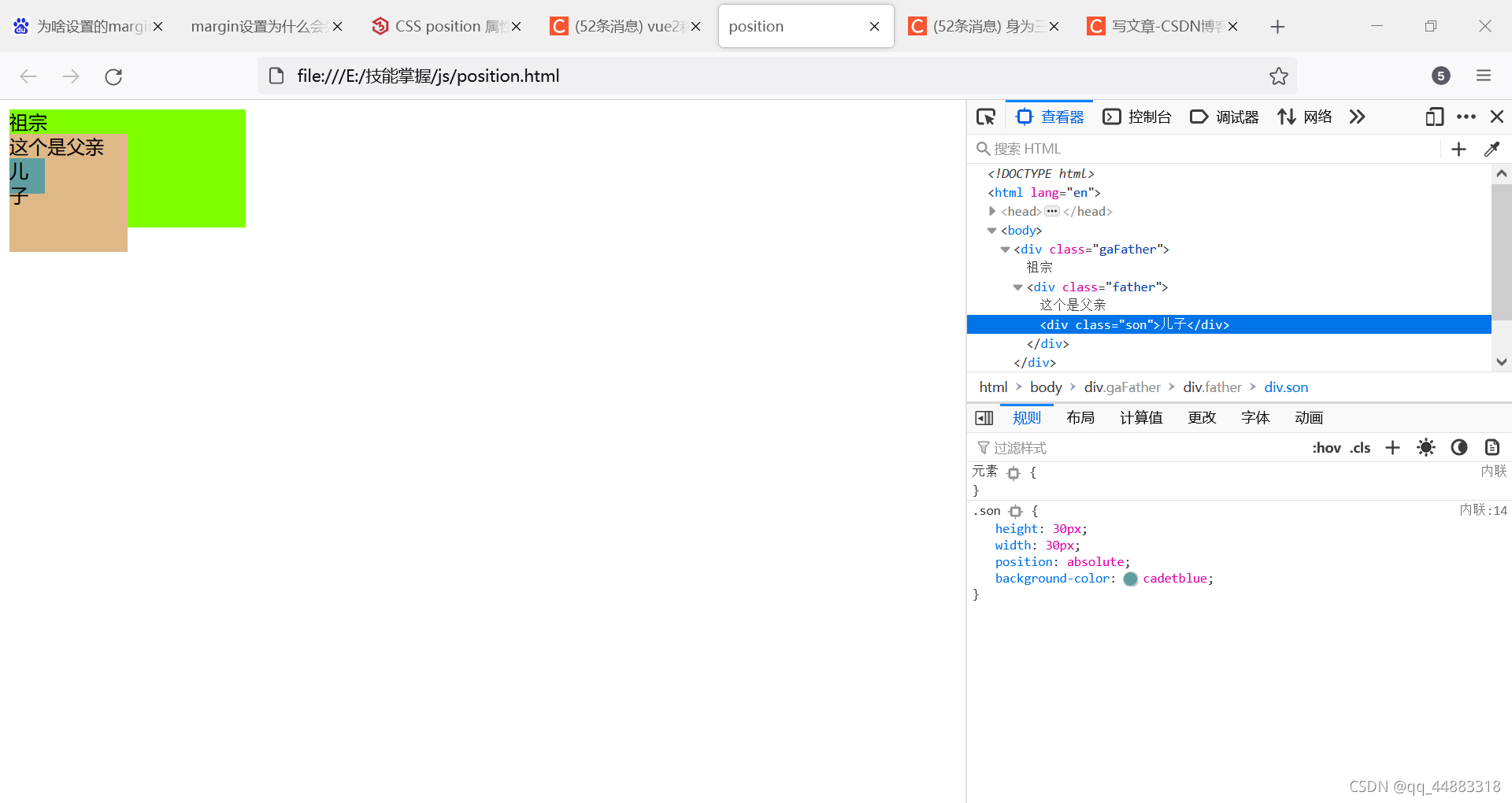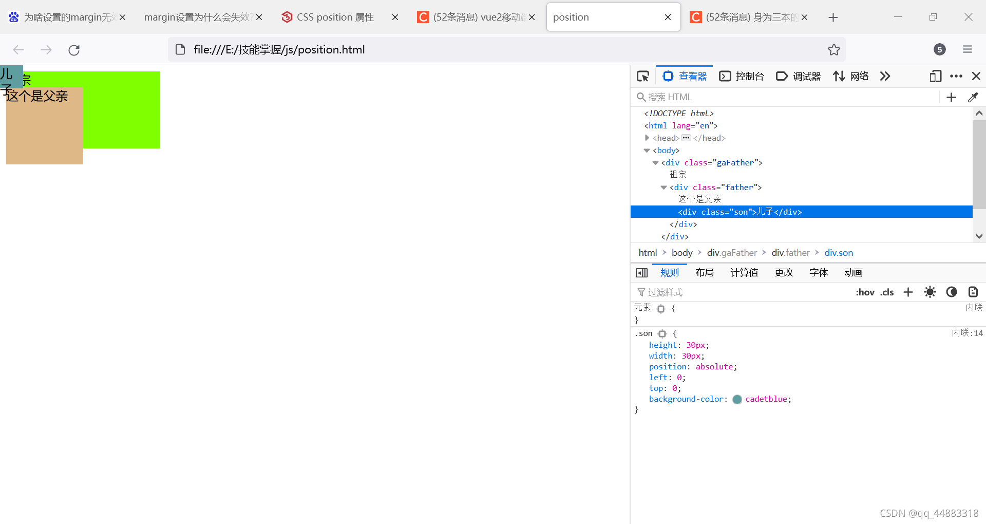 生成绝对定位的元素,相对于 static 定位以外的第一个父元素进行定位。