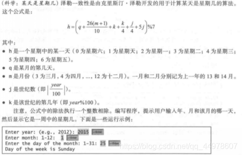 int h=(day+26*(month+1)/10+year%100+year%100/4+year/100/4+5*year/100)%7;