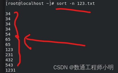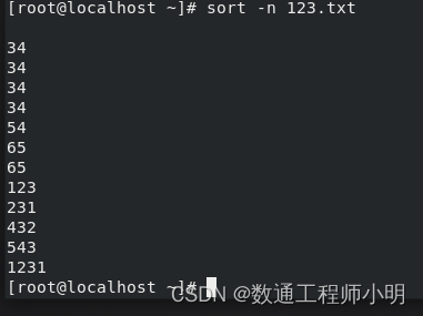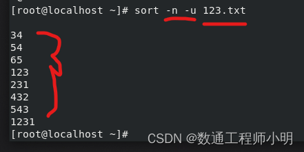 Sort -t(以什么的为间隔符): -k(第几列) 3 -n(第三列字符为数字) /eth/passwd