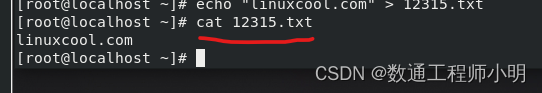 “>>”追加写入重定向,会将命令追加到文件内,不会覆盖。
