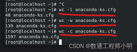 -w统计字数(单词数),-l统计行数,-c统计字节数