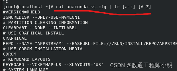 cat anaconda-ks.cfg | tr [a-z] [A-Z]