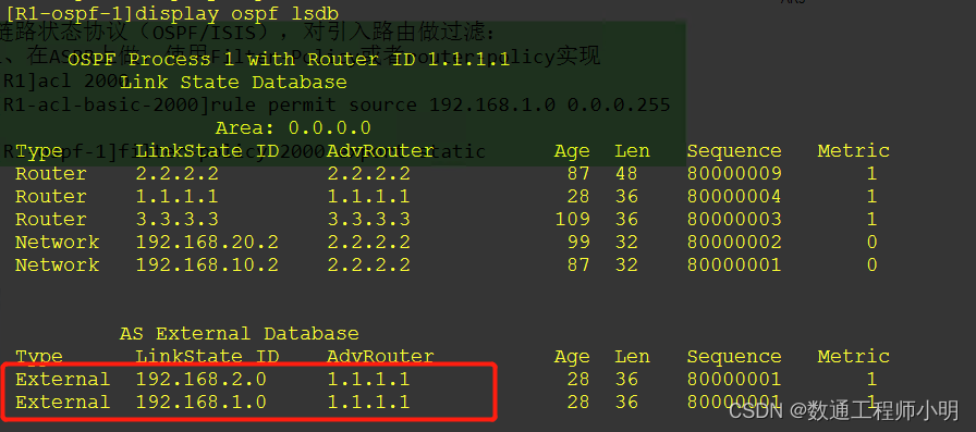 (如果是:[R2-ospf-1]filter-policy 2000 export 对链路状态协议发送的路由一点用也没有,对距离矢量协议有用)