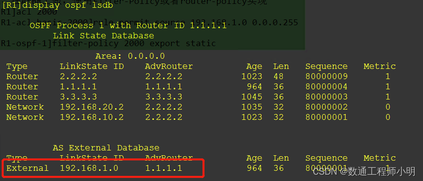 [R2-ospf-1]filter-policy 2000 import 对于接收的路由做过滤,对于链路状态协议来说不会过滤LSA,LSA依然可以泛洪给邻居