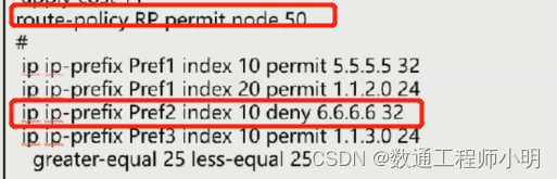 [R3]ip ip-prefix pp index 10 permit 1.1.1.0 24 greater-equal 24 less-equal 24 精确匹配1.1.1.0/24