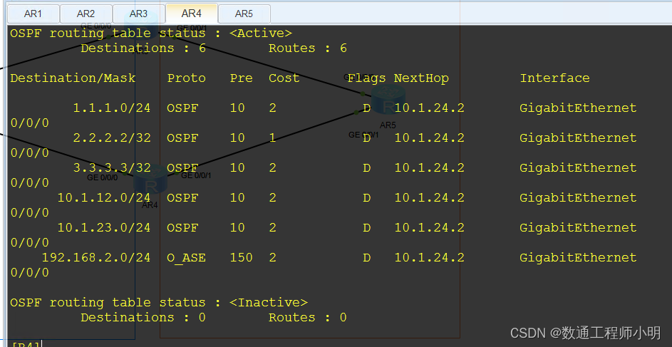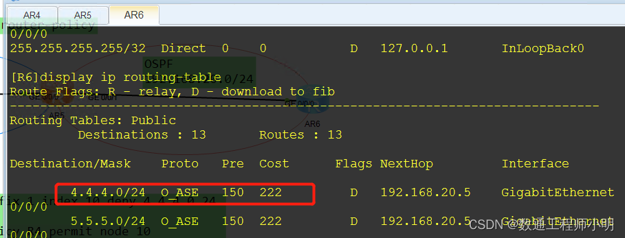 R2过滤后:五类LSA算出的路由在加表的时候过滤。