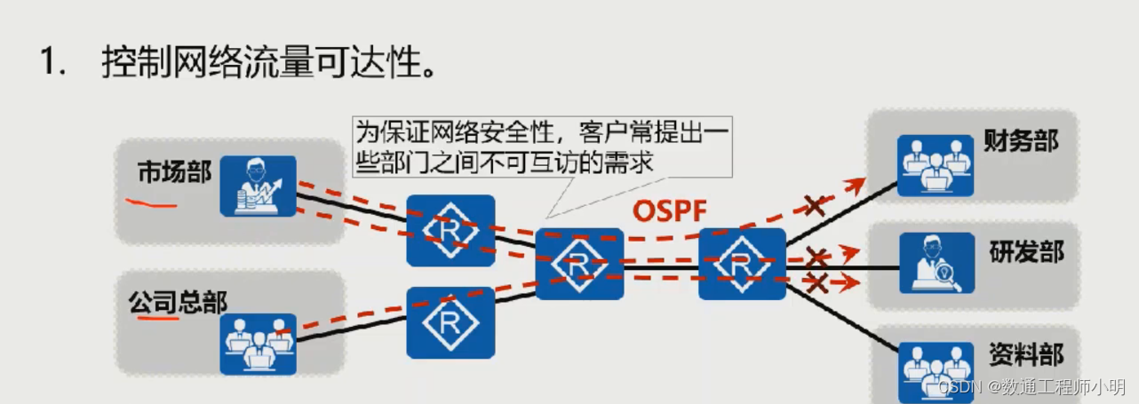 传统网络中要保证数据安全性、提高带宽利用率,需要控制流量可达性(通与不通,不通最安全)、调整网络流量路径等。
