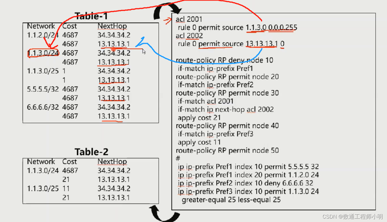 (1)、route-policy 可以匹配各种路由的特征,匹配能力更强、灵活、高效。