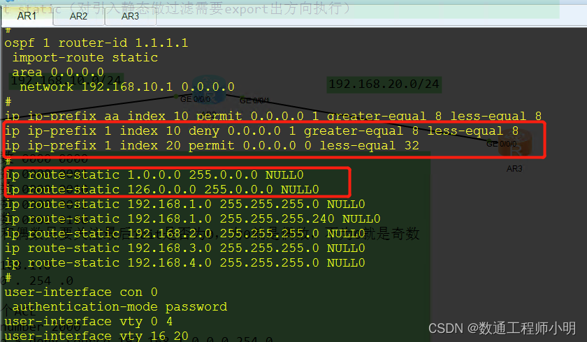 1、ip ip-prefix 也存在默认语句,拒绝所有的路由。