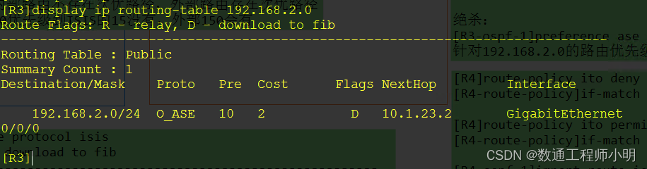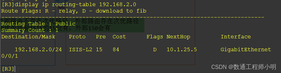 针对192.168.2.0的路由优先级改为10,ISIS的默认150