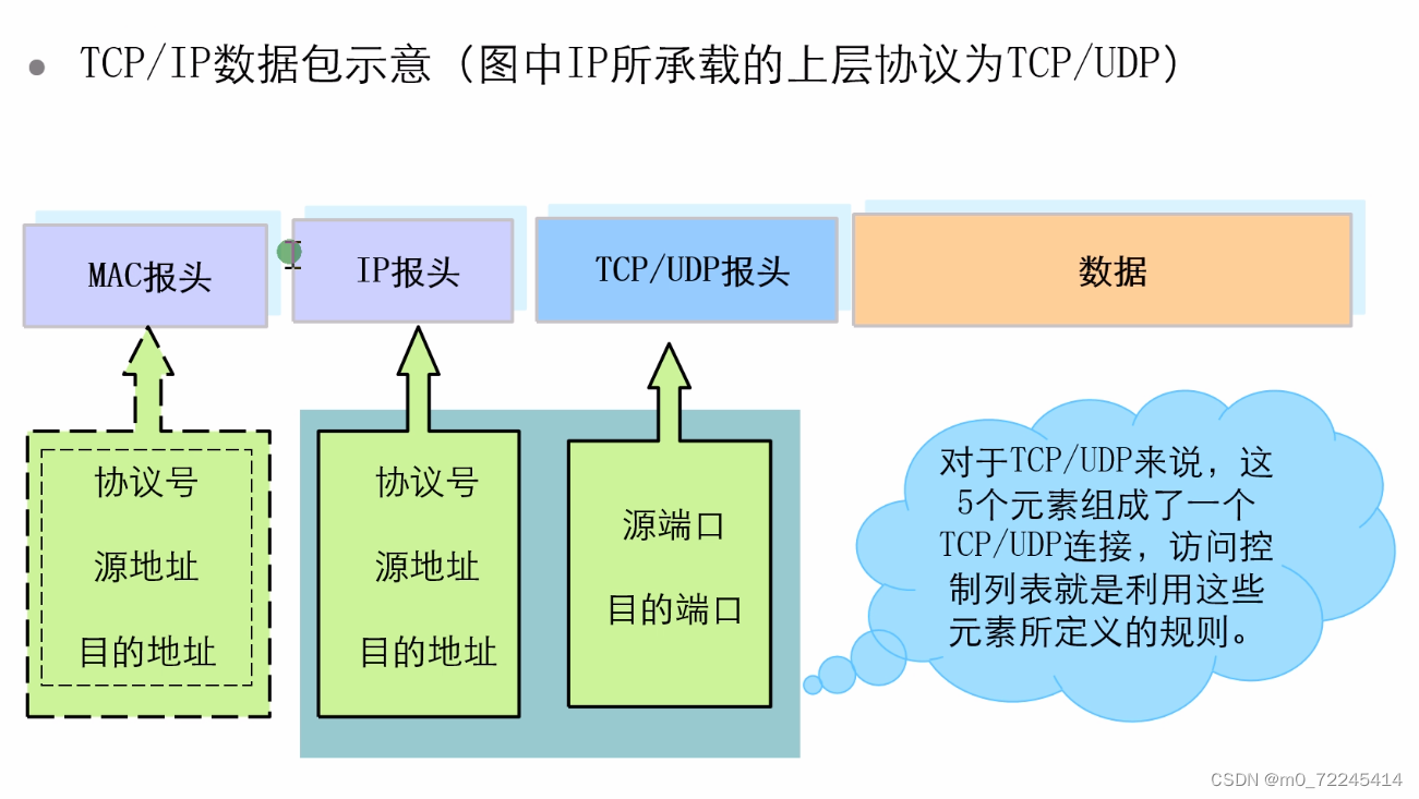ACL是基于五元组(源IP、目的IP、源端口、目的端口、协议号)