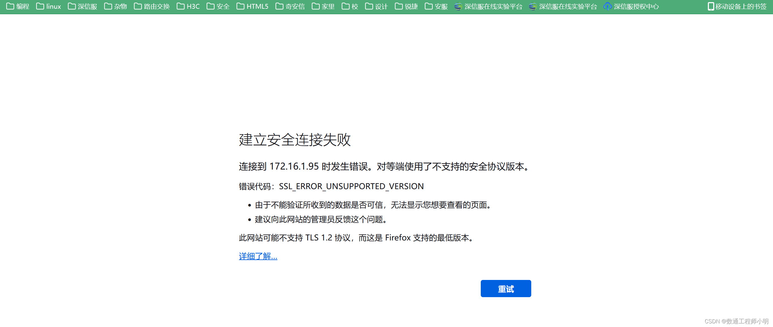 出现这个问题,大概率是网站支持的TLS协议很低,而浏览器的TLS协议很高,那么就是是降浏览器的TLS版本。