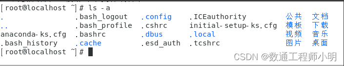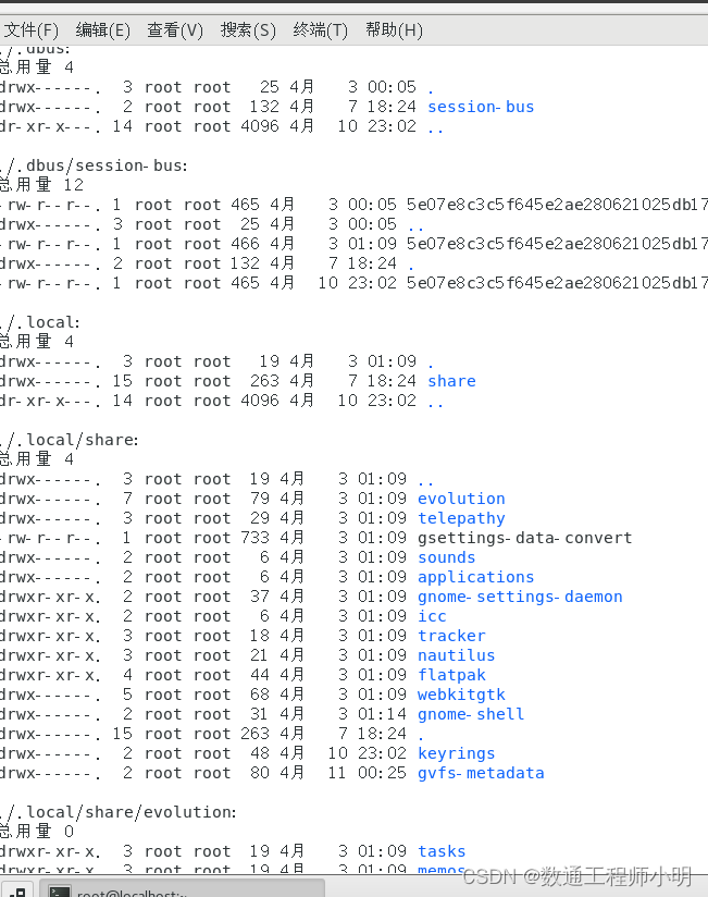 • 查看隐藏文件和隐藏文件夹,Linux里边只要在文件/文件夹前已“.”开头命名就可以隐藏。