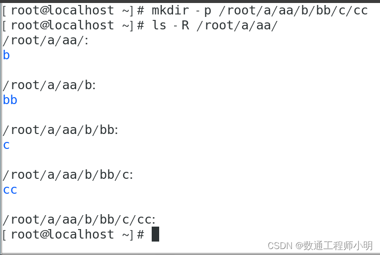 • mkdir -p /root/a/aa/b/bb/c/cc