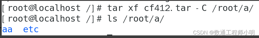 • tar xf /cf412.tar -C /root/a/